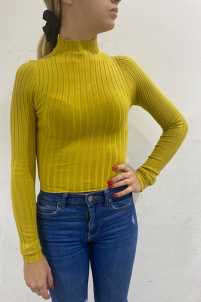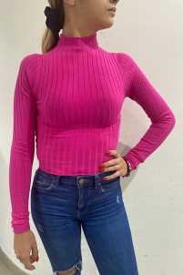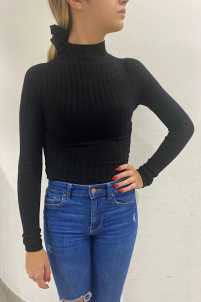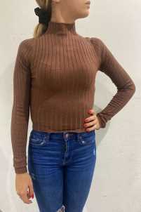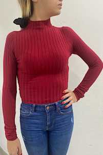 Maglia elasticizzata a costine, manica lunga, girocollo.