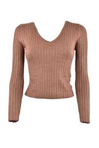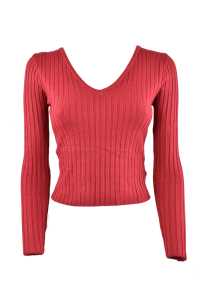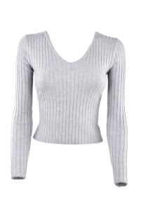 Maglia a costina, manica lunga, scollo a V fronte e retro.