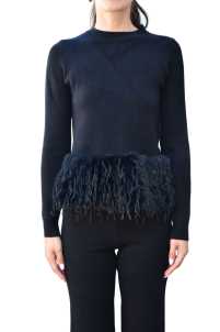 Maglia elasticizzata a girocollo, maniche lunghe e pelliccia.