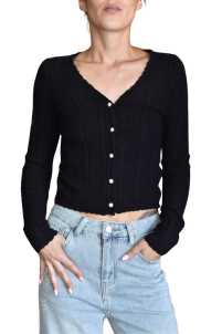 Giacchino con bottoni elasticizzato, maniche lunghe e scollo a V.