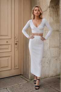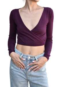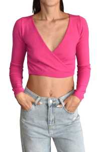 Maglia elasticizzata incrociata, scollo a V, maniche lunghe.