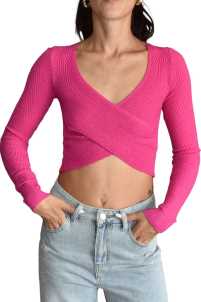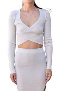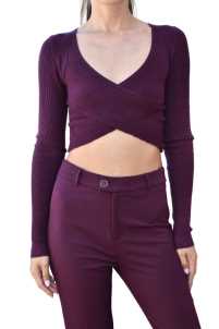 Maglia incrociata lavorata, scollo a V, maniche lunghe.