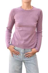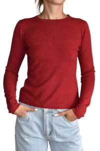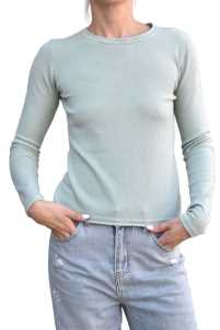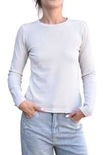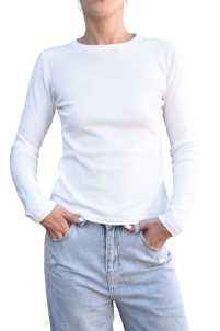 Maglia semplice elasticcizata a girocollo merletto lavoraato e maniche lunghe.