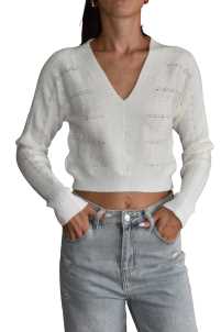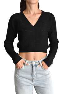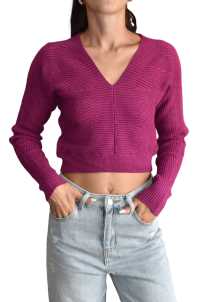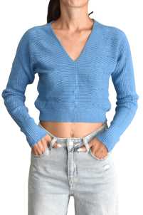 Maglione elasticizzato crop con scollo a V e trama a spiga.