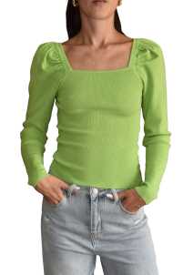 Maglia elasticizzata con maniche lunghe a palloncino, scollo quadrato.
