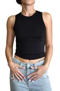 Canotta smanicata elasticizzata semplice, con merletto lavorato.