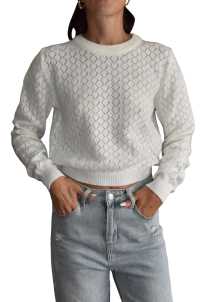 Maglione elasticizzato a girocollo con trama rombo e maniche lunghe.