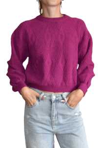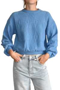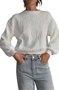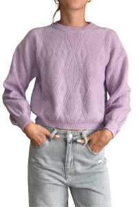 Maglione elasticizzato traforato, trama a rombo grande con girocollo e maniche lunghe.
