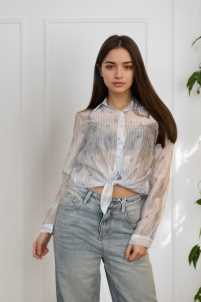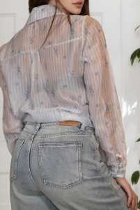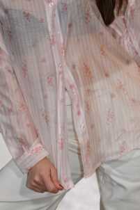 Camicia a righe con fantasia floreale tono su tono, maniche lunghe, collo revers, chiusura con bottoni.