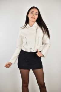 Giubbino in ecopelle, maniche lunghe collo revers, chiusura con zip e cintura. Tasche laterali.