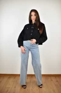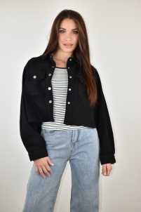 Giubbino in jeans con tasche frontali, chiusura con bottoni.