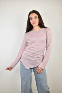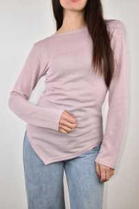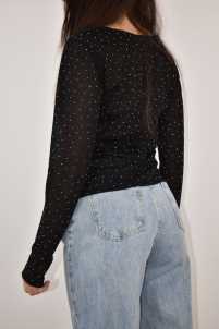 Maglia elasticizzata micro traforata con applicazioni strass, maniche lunghe, girocollo.