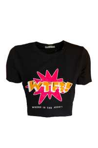 t-shirt crop in cotone con stampa, girocollo e maniche corte.