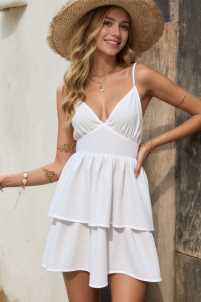 Vestito a balze con bretelle regolabili, fiocco e apertura sul retro.