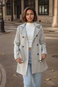 Cappotto con cintura collo revers, maniche lunghe e tasche laterali.