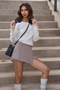 Pantagonna a portafoglio, bustino e chiusura con zip laterale.