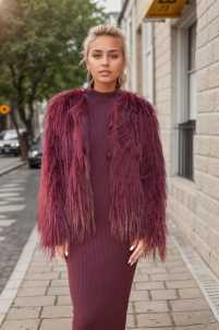 Pelliccia pelo lungo, girocollo, chiusura con clip.