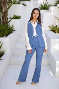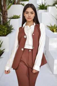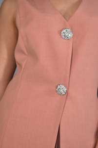 Gilet completo Federica, leggermente svasato, scollo a V e chiusura con bottoni gioiello a clip.