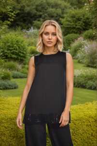 Casacca fluida completo Wendy, smanicata con borchiette luminose.