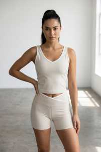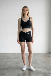 Set sportivo pantalone elasticizzato e top scollo a V.