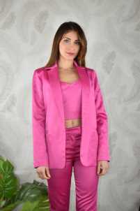 Giacca in raso, manica lunga, collo revers, chiusura con bottone.