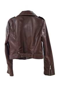 Chiodo in Ecopelle, manica lunga, collo revers, chiusura con zip laterale e cintura.