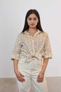 Camicia in cotone con stampa floreale, collo revers, maniche lunghe e chiusura con bottoni.