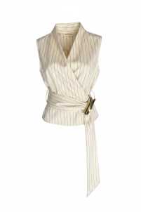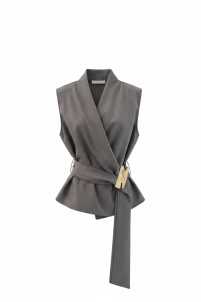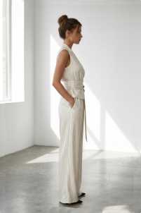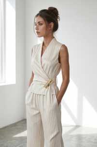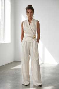 Set pantalone con elastico in vita e tasche laterali con gilet smanicato con cintura in vita.